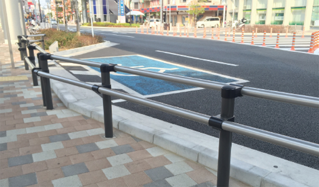 アーバンレイルシリーズはビームパイプに熱くなりにくいメタリック調の樹脂被覆素材を採用した利用者に優しい快適設計の防護柵です。